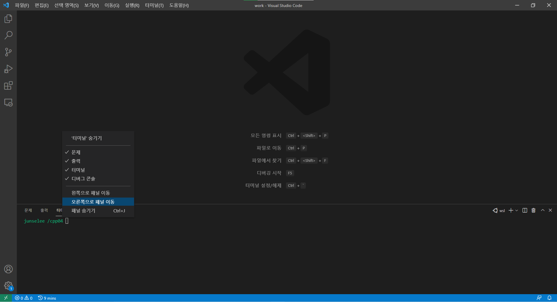 ๐ 'ํฐ๋ฏธ๋' ๊ธ์จ์ ๋ง์ฐ์ค ์ฐ์ธกํด๋ฆญ -> ์ค๋ฅธ์ชฝ์ผ๋ก ํจ๋ ์ด๋์ ๋๋ฌ์ค๋ค.